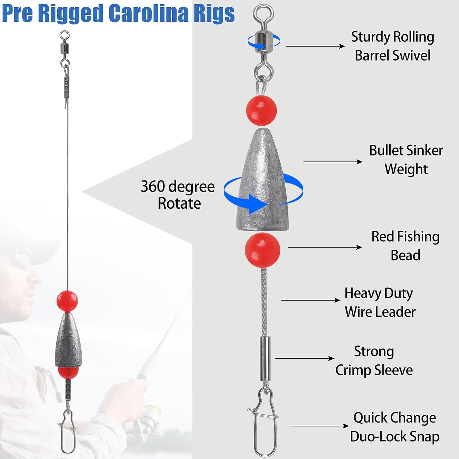 • EASY TO USE: Simply attach the swivel to your fishing line and connect your bait or hook to the snap of the Carolina rigs; and you are ready to go, allowing you to focus on reeling in your catch effortlessly