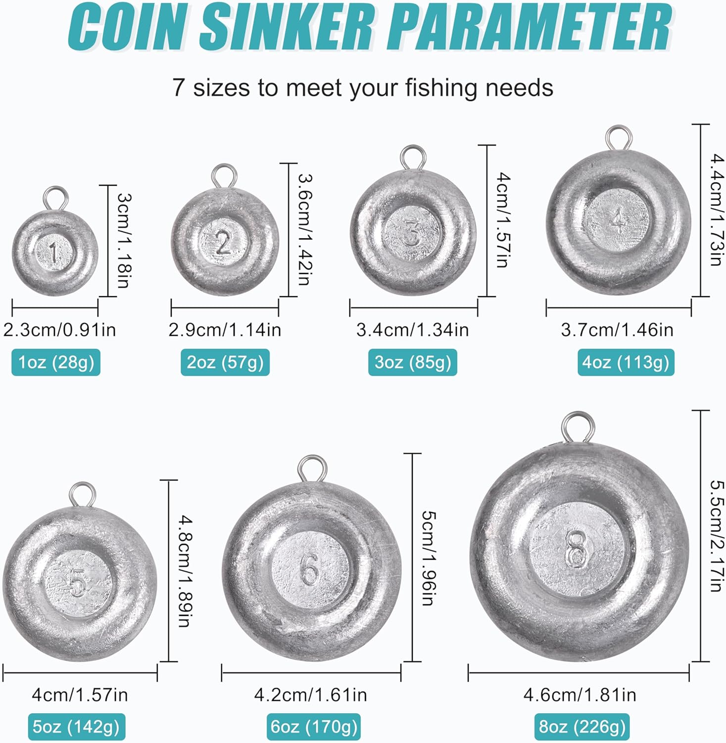 MULTIPLE SIZES - Available 7 sizes fishing weights to choose from, 1oz, 2oz, 3oz, 4oz, 5oz, 6oz, 8oz to meet your different fishing needs