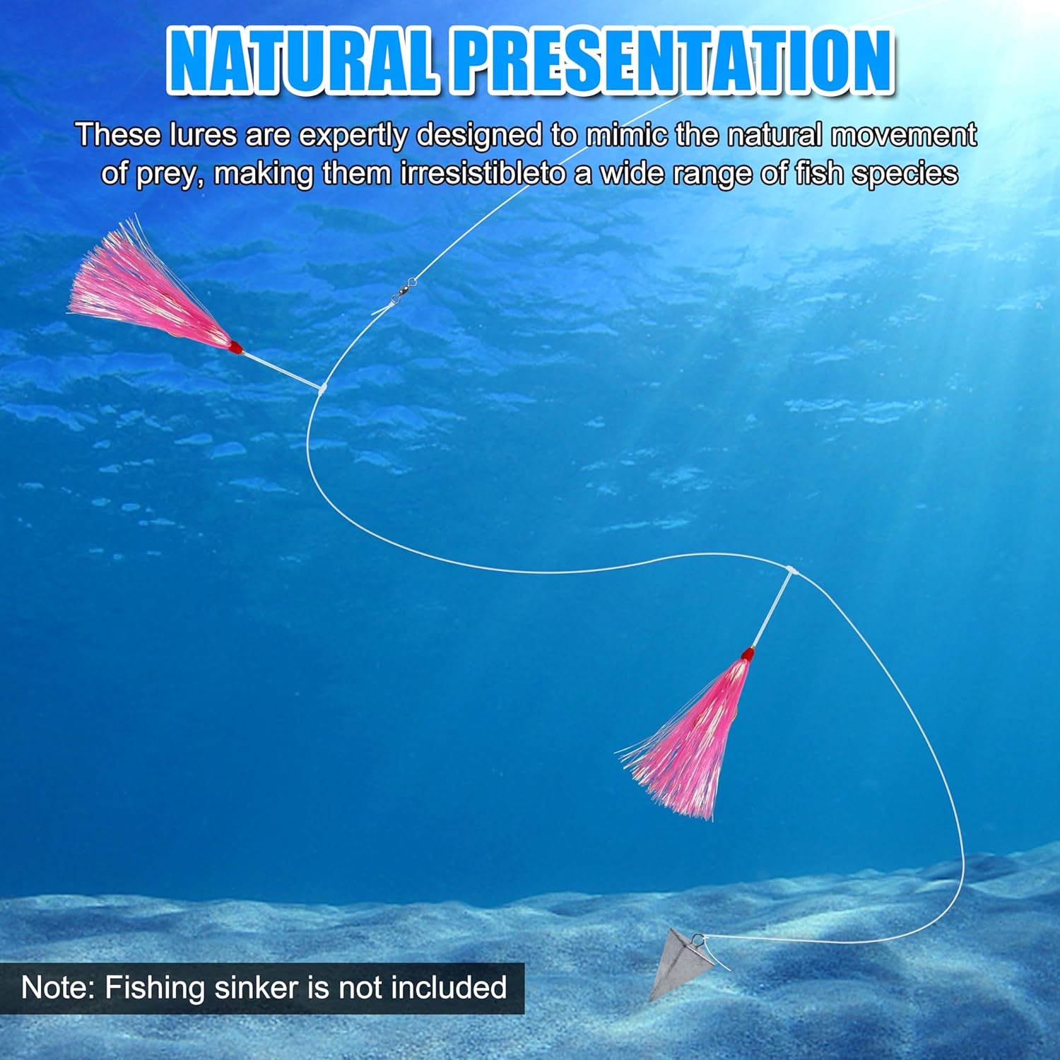 • 【Pre-rigged Fishing Rigs】Fishing Teaser Rigs tied with 3/0 wide gap hooks, 30lb mono leaders and 60lb stainless steel barrel swivel. Approximate Main Line Length: 39inch(100cm), Branch Line Length: 2inch(5cm).