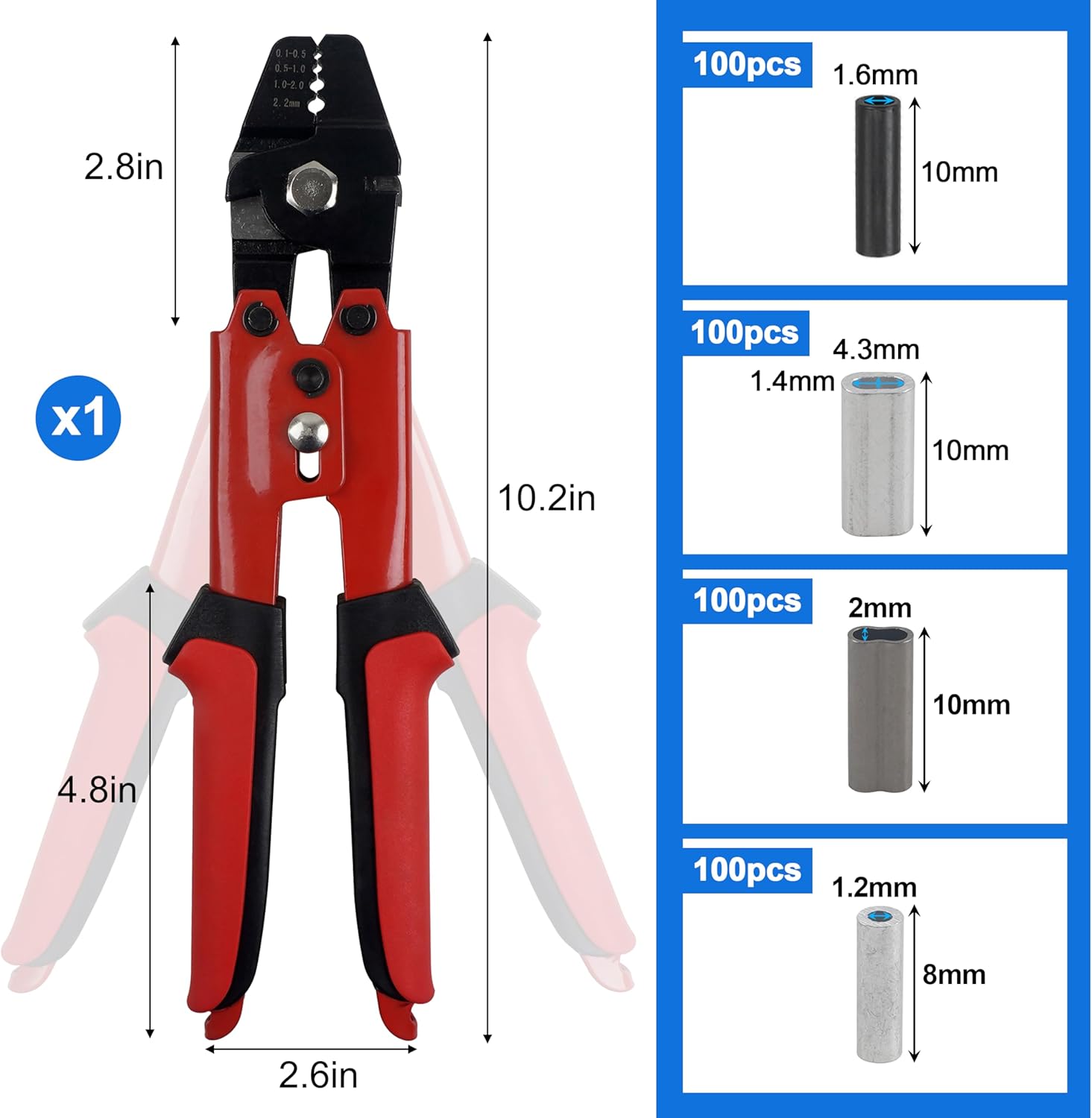 - 【APPLICATIONS】Crimping tool coordinate with beads and crimp sleeves can be widely used for wire rope, cable line, boat rigging, dog leashes and etc. Is a great gift for dad or men on any festival!
