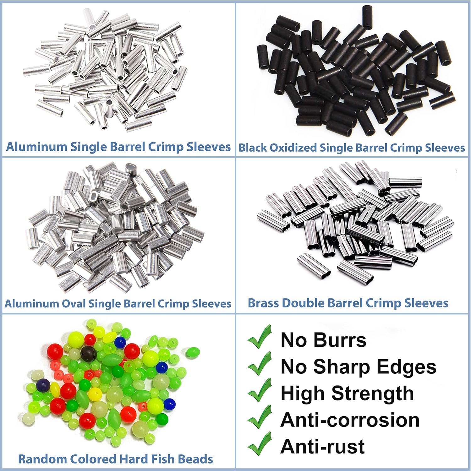 Fishing Crimping Tool Kit, Fishing Crimp Pliers with 500pcs Crimp Sleeves Beads Set, Heavy Duty Wire Leader Rope Crimper Tool Wire Cutter Aluminum Copper Loop Sleeves