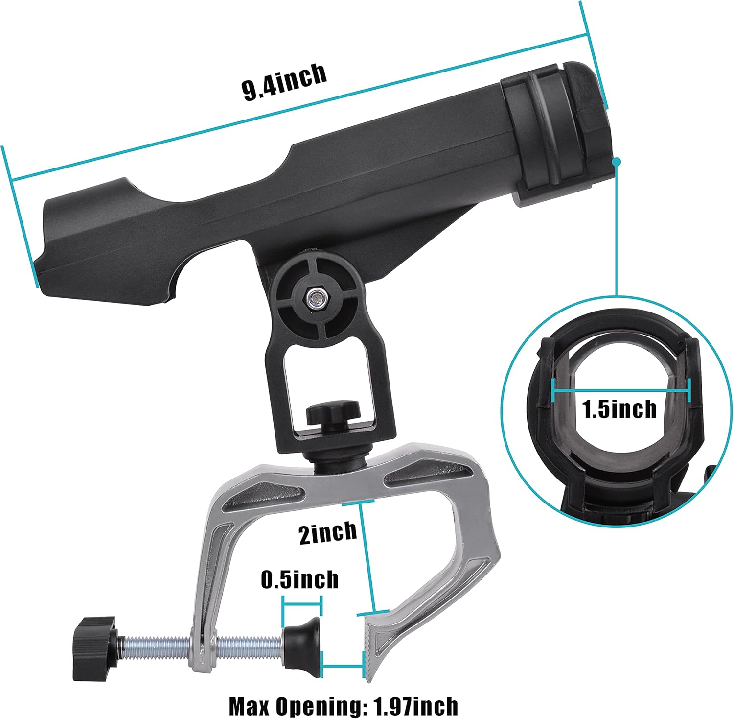 - CLAMP MAX.OPENING: 4.75inch. Please check your boat/kayak board size before making the purchase.