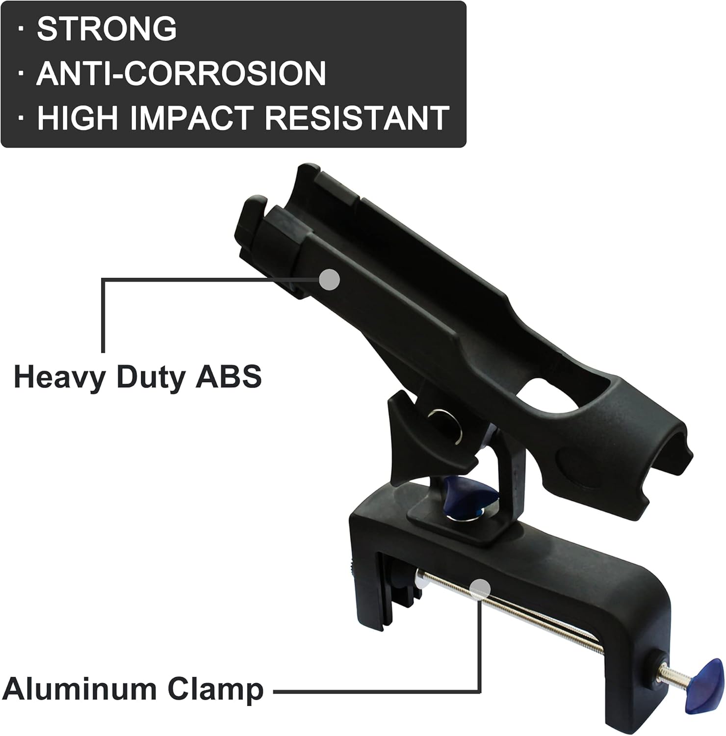 - SOLID & STURDY: The fishing boat rod holder is constructed with heavy duty ABS, aluminum clamp with steel pressure screws. Featured as high impact resistance and anti-corrosion property.